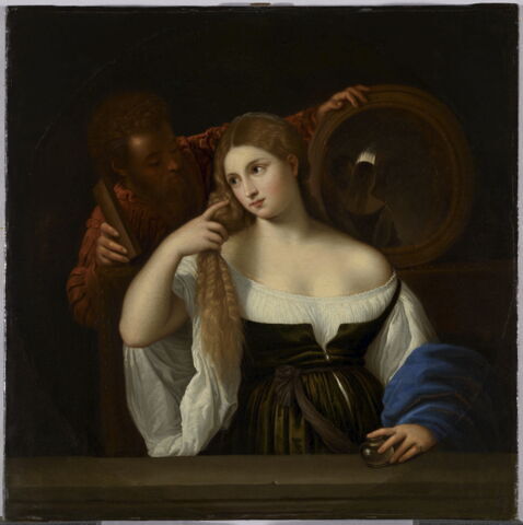 - ? Francesco II Gonzaga (1484-1519), duc de Mantoue (? Inventaire de Vincenzo II Gonzaga, 1627). – Charles Ier d’Angleterre (1600-1649 ; ? Inventaire de 1639 : Parmesan) ; sa vente, Londres 23 X 1651, n° 269 (Tystsyans Mrs after ye life) ; D. Murray, Londres. – E. Jabach (1618-1695), Paris (Giorgione) ; acquis de ce dernier par Louis XIV, 1662 (inventaire de 1683, n° 31).