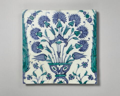 Matériau/Technique : Céramique (pâte siliceuse), décor peint sur engobe sous glaçure transparente - Date de création / fabrication