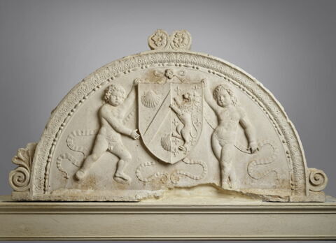 - Eléments de la chapelle de Commynes (dite aussi d'Argenton) dans l'église des Grands-Augustins de Paris. Chapelle réalisée probablement du vivant de Philippe de Commines. La date de 1506 portée sur la représentation d'une bulle pontificale sur le pilastre RF 3133 a été considérée comme celle de l'exécution des travaux dans la chapelle, hypothèse qui n'a pu être vérifiée. Saisie révolutionnaire. Entrés au Dépôt des Petits-Augustins en 1791-1792. Musée des Monuments français, 1795-1816. Attribuées au Musée royal par décision ministérielle du 3 avril 1817 et indiquées comme ayant été remises à Bernard Lange, chef de l'atelier de marbrerie du Louvre, le 21 mai 1818. En fait, semblent être demeurées à l'Ecole des Beaux-Arts après la fermeture du musée des Monuments français. Attribué au musée de Versailles le 20 novembre 1832. Galeries historiques de Versailles en 1834. Transféré au musée du Louvre en 1850.