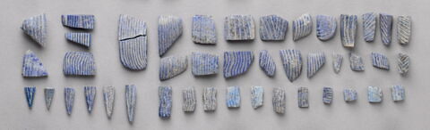 Précision sur l'objet : Elément d'incrustation de statuette : boucles de barbe de taureau androcéphale - Dimensions